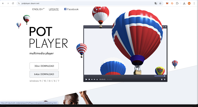 先打开 potplayer 的官网,PotPlayer 是和 KMPlayer 同一个开发者开发的产品,KMPlayer 我相信 80 后这一代人都不陌生,当年可以说是视频播放器里的大哥大。这个软件有 32 位和 64 位可选,最低系统版本位 windows7,根据自己的系统选择对应的版本即可,我的系统是 win11 64 位,选择下载。然后打开,就进入到安装环节,双击开始安装,语言选择中文简体,