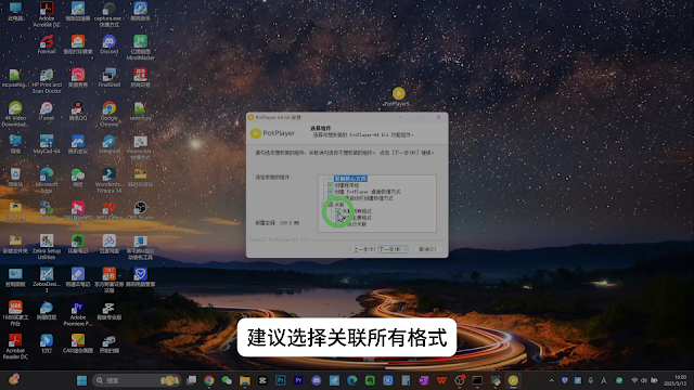然后下一步,下一步,关联格式这里我建议全选上,安装目录,不管是安装什么软件,我的建议一直是不要放在 C 盘,会拖慢系统速度,我设置安装到 D 盘,点击安装。